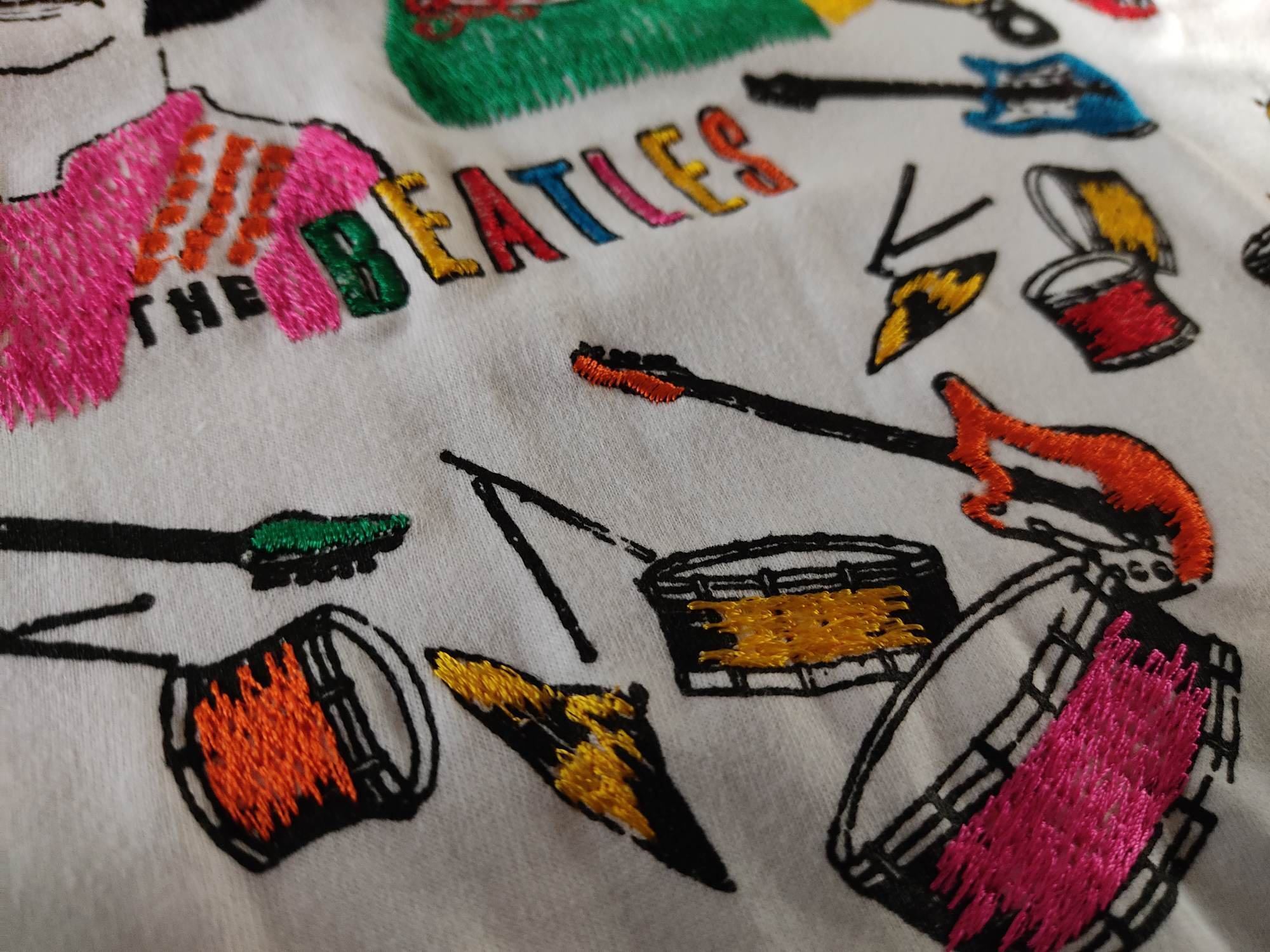 プリントはよくありますが、こちらは刺繍でメンバーと楽器がデザインされている、かなり手の込んだ作りです。